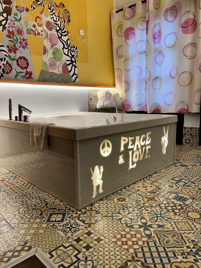 The hippie movement marked the 60 years, under the premises of free love and pacifism, it was also a decade of music Psychedelic, colorful … at Posada La Leyenda you can live a unique experience in our 60s themed room . Designed especially for those who want to relive that decade without giving up the comfort and convenience that a bubble bath in the jacuzzi gives you.
